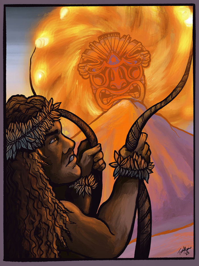 Explore the works by inventive artist Tara Bonvillain who has interpreted legends from the Pacific Islands through her visionary, colorful style. Immerse yourself in Tara's depiction of the vibrant history and culture of the region's most notable stories. Simply click on the country that represents where the legend comes from to view these extraordinary paintings.